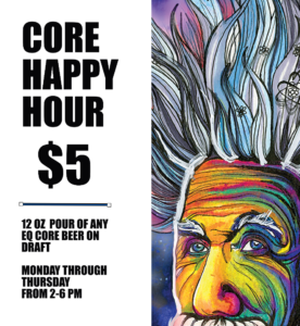 Join us Monday through Thursday from 2-6pm for 12 ounce pours of any core beer on draft for just $5!