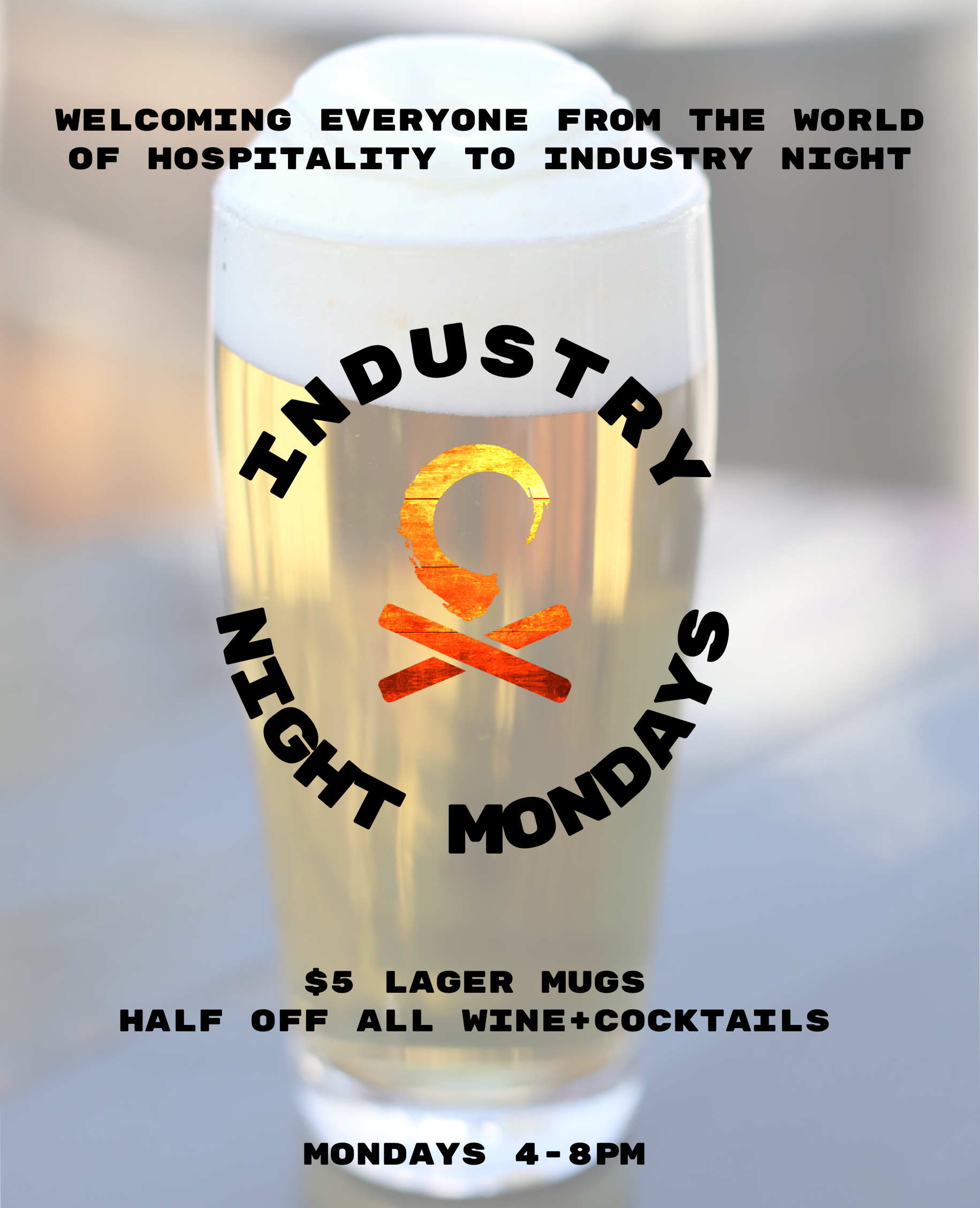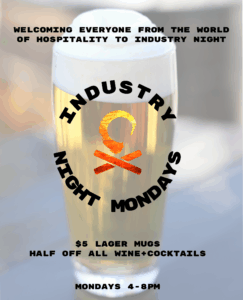Bartenders, servers, cooks, baristas, brewers, dishwashers, hosts, managers, and all hospitality pros who keep this industry running, join us each Monday from 4 to 8 PM for well-earned perks at Bonfire.