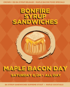 To commemorate the latest batch of barrel aged maple syrup, we are excited to host Bonfire Syrup Sandwiches & Maple Bacon Day. A journey that merges two decadent treats across a day of imperial stouts, exceptional crafted artisan syrup, food specials from the Bonfire kitchen, and event-inspired cocktails for a culinary adventure for your tastebuds.