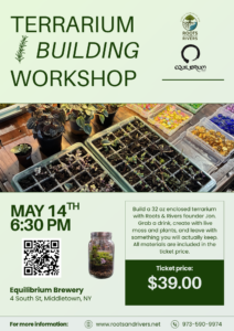 Spring is here! Grab dinner and drinks while you craft your very own whimsical plant terrarium to take home with the help of @rootsandrivers1272. All materials are included in the workshop price. Grab your tickets by scanning the QR Code or visiting the link in our bio. 🌱🪴