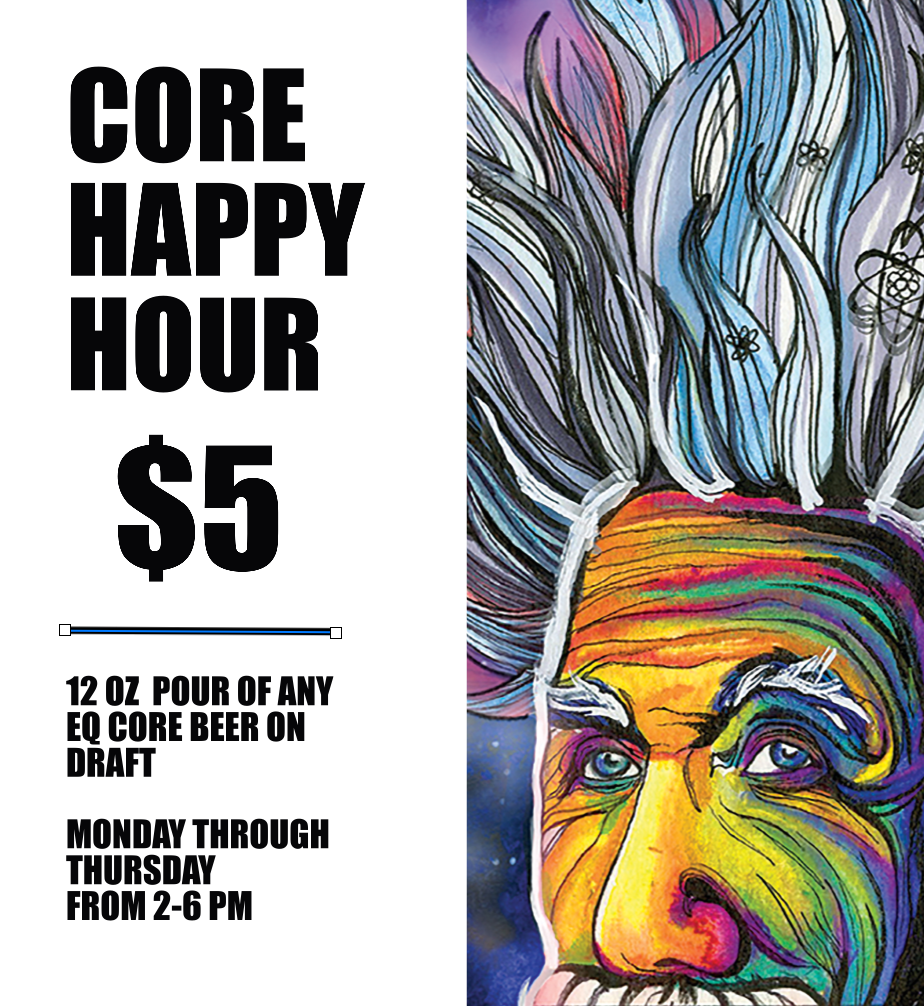 Join us Monday through Thursday from 2-6pm for 12 ounce pours of any core beer on draft for just $5! |